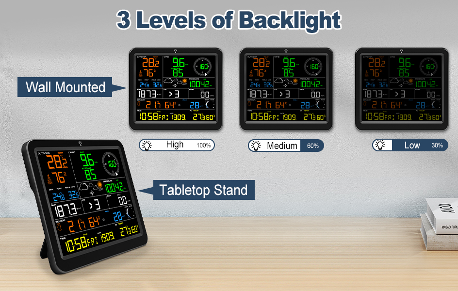 14. UV and Sunlight Index Display(W/㎡, fc or lux.) – Hi Alarm