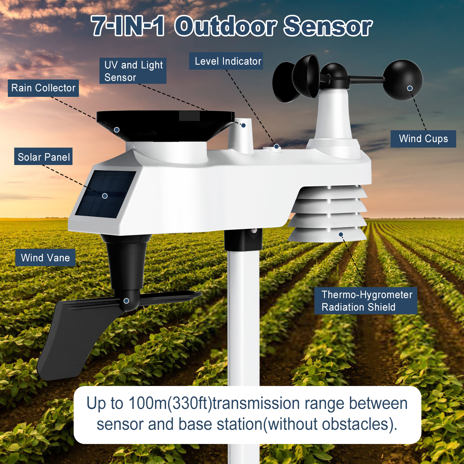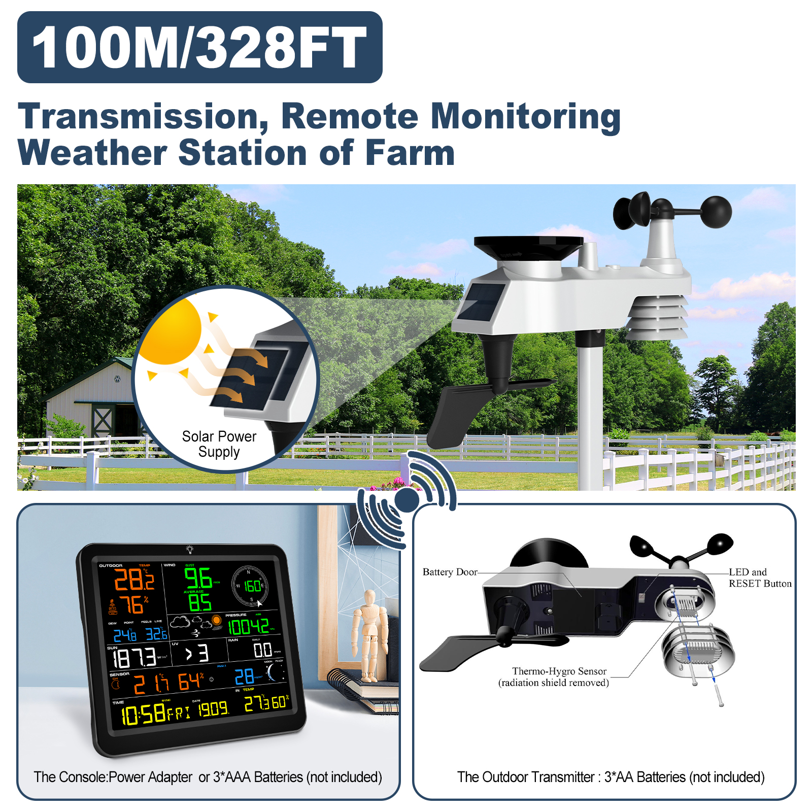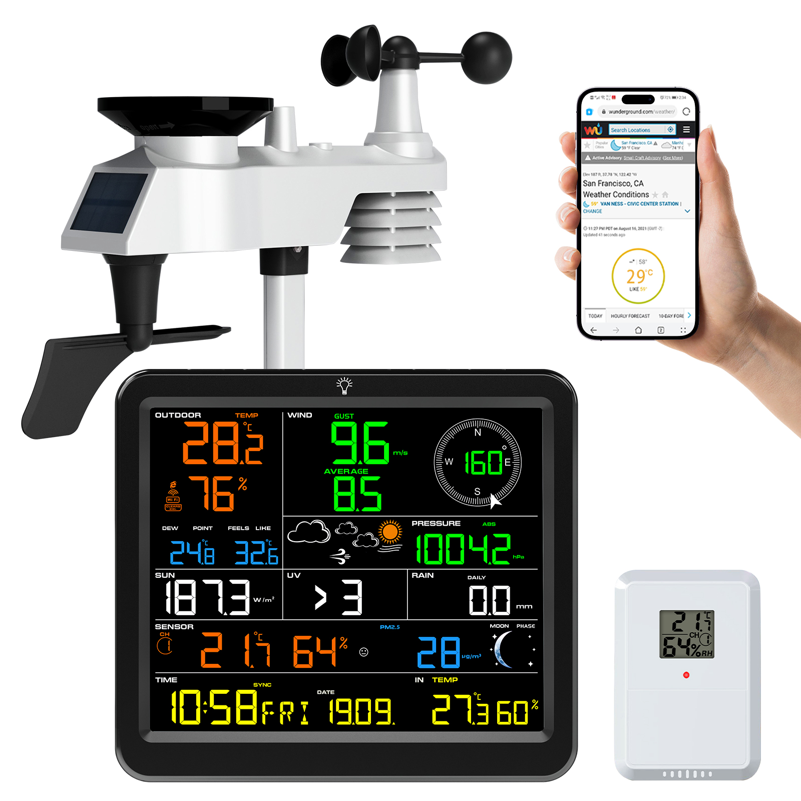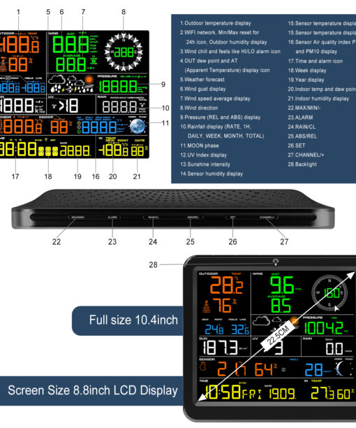 6. Remote Thermo-hygrometer Sensor temp(°C/°F) and humidity – Hi/Lo alarm