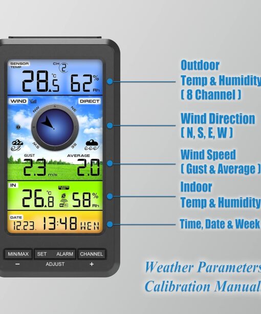 12. Manually calibration of in/outdoor temp, humidity, pressure, wind speed, rainfall, sunlight