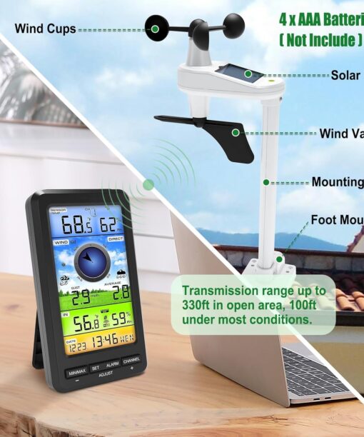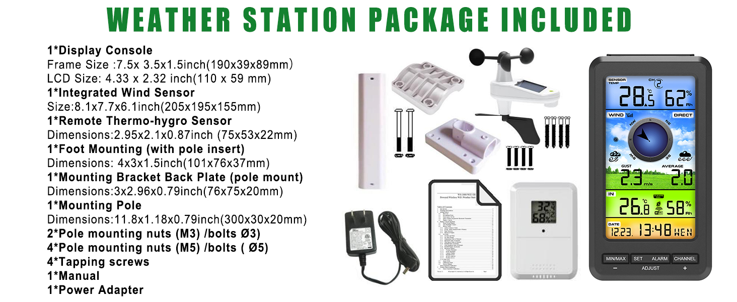 | 4) Wind sensor: 4xAAA alkaline batteries or Lithium batteries (not included) |